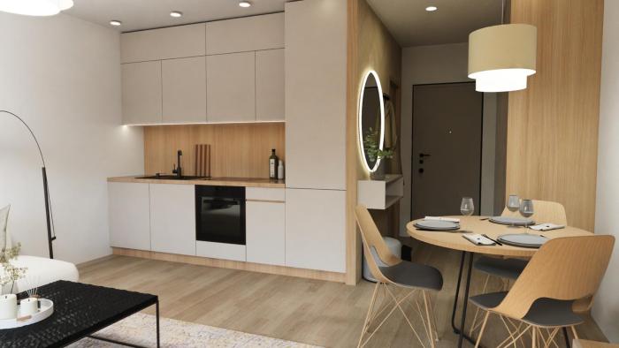 Obývacia izba (22,50 m²) s kuchyňou (12,80 m²) – prirodzené centrum bytu pre život aj reprezentáciu
