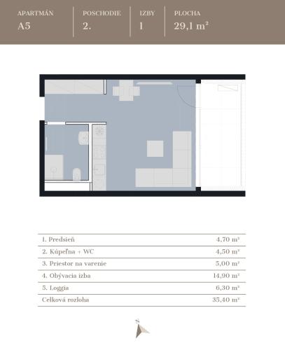 Celková plocha: 35,40 m²
