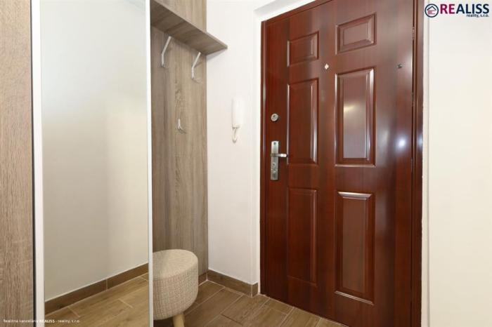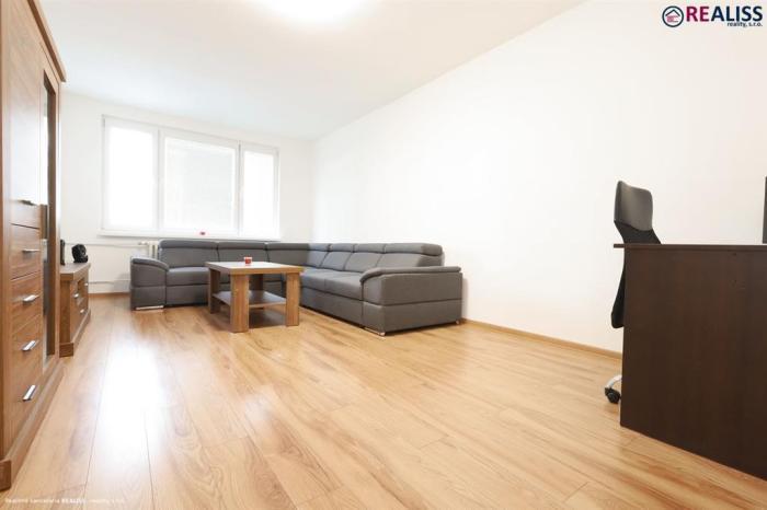 Rozloženie bytu je dobre premyslené, s využitím jeho metráže bez zbytočného priestoru. Pozostáva zo vstupnej chodby s vešiakovou zástenou a komorou, spálne s balkónom, veľkej obývačky, útulnej kuchyne, kúpeľne a samostatného WC v novom murovanom jadre vybavenom rohovou vaňou. Zväčšením toalety sa podarilo vytvoriť priestor pre práčku. K bytu patrí okrem dvoch balkónov ( v spálni a kuchyni ) aj uzamykateľná pivnica v suteréne bytového domu.