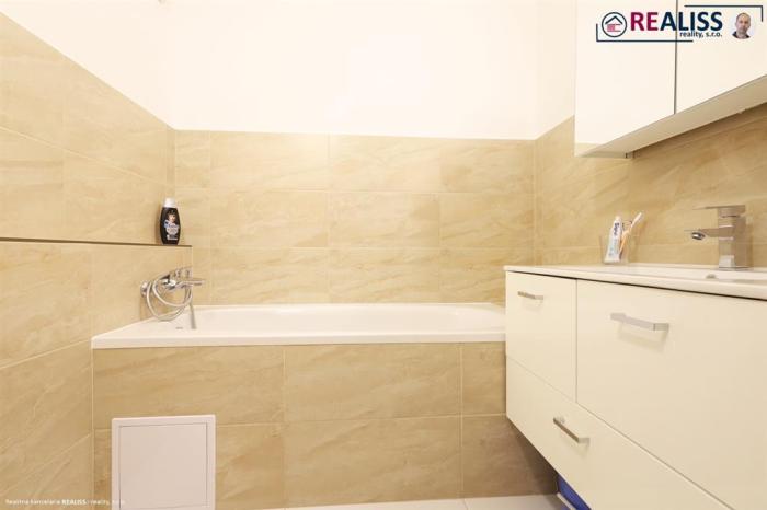 - Kúpeľňa a WC – kompletne prerobené murované jadro s novou sanitou, dlažbou a obkladom.