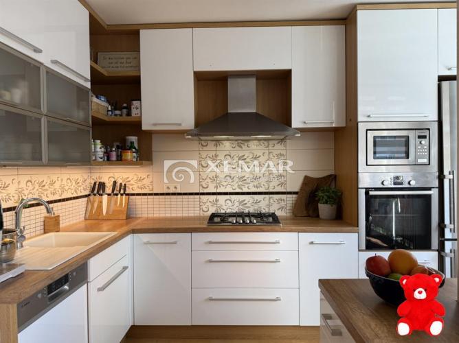 Byt je slnečný, priestranný, moderne zariadený, prešiel kompletnou rekonštrukciou. Pozostáva z chodby, kuchyne prepojenej s jedálňou a obývacou izbou, troch obytných miestností, komory, oddelenej kúpeľne a toalety, prináležia mu 2 väčšie lodžie a pivnica. Drevená podlaha, hladké stierky, príjemné farby či vlastný plynový kotol sú tiež benefitmi tohto bytu. Predáva sa čiastočne zariadený.