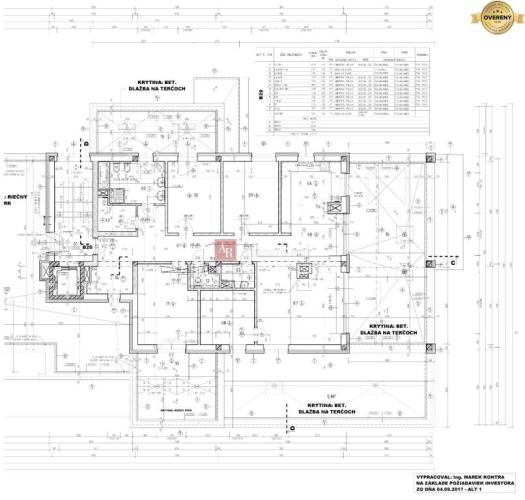 Dispozícia bytu: chodba, kúpeľňa s WC, kúpeľňa, kuchyňa, jedáleň, obývacia izba, 4x izba/spálňa, WC, šatník, zádverie, 3x terasa.