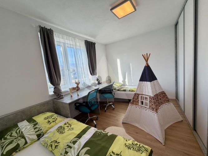 Ponúkame na predaj nadštandardný 3-izbový tehlový byt v obci Bešeňová, v novej lokalite IBV. Nehnuteľnosť poskytuje komfort porovnateľný s rodinným domom.