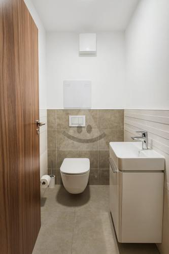 Rozlohou velkorysý 4. izbový apartmán sa dá využiť aj na 2. dvojizbové apartmány, každý s vlastnou kuchynskou linkou, kúpelňou, Wc.