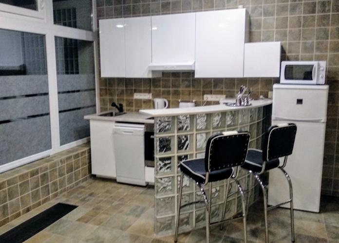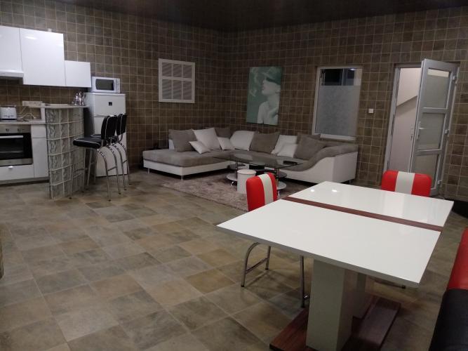 Atypický novo zrekonštruovaný byt s vlastným intýmnym dvorom - trávnik obkolesený ihličnanmi vysokými 4 metre. Luxusne zariadený s možnosťou využívať vlastnú vírivku. Priestranná obývačka, jedálenský stôl a sedenie, kuchyňa s barovým pultom, spálňa s manželskou posteľou, malá pracovňa, kulpeľňa so sprchovým boxom. Kompletne zariadené aj s obrovským LED televízorom. Interent, wifi.