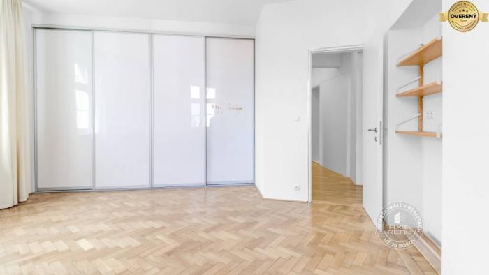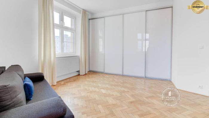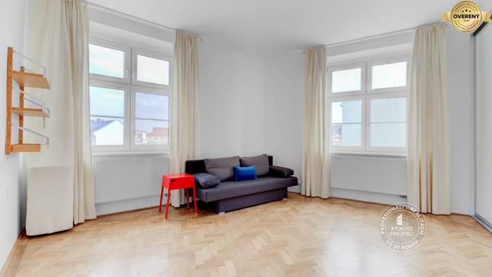 Realitná kancelária AXIS REAL ponúka na prenájom priestranný 3-izbový byt s celkovou rozlohou 110 m² v lokalite Bratislava I – Staré Mesto, Jelenia ulica. Byt sa nachádza na 3. poschodí 5-poschodového tehlového bytového domu s výťahom. Dispozične pozostáva zo vstupnej chodby, samostatného WC, priestrannej obývacej izby s kuchynskou a jedálenskou časťou, priechodnej chodby, dvoch samostatných nepriechodných izieb, pričom jedna z nich disponuje vlastným šatníkom, a priestrannej kúpeľne s vaňou a sprchovacím kútom. K bytu prislúcha aj murovaná pivnica o rozlohe cca 5 m². Parkovanie je verejné, resp. rezidenčné.