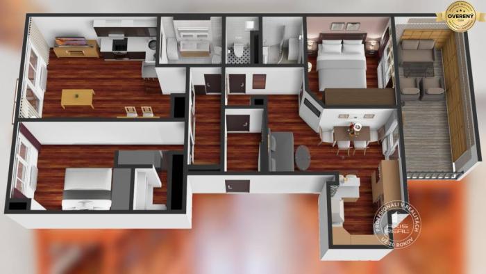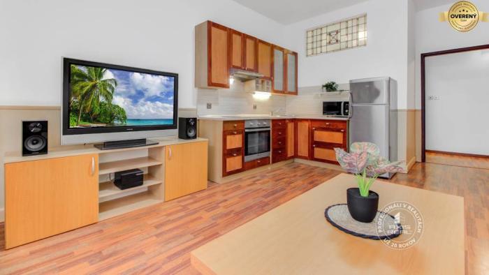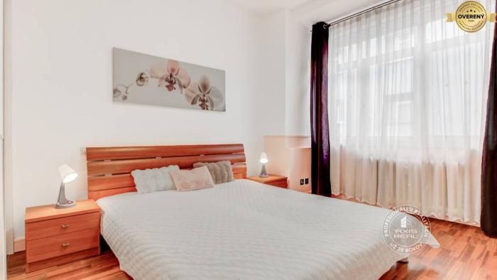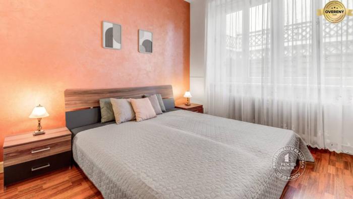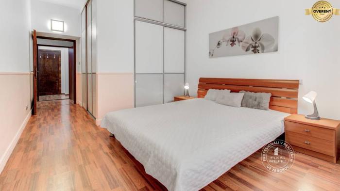 Byt je po KOMPLETNEJ REKONŠTRUKCII. Sú v ňom laminátové podlahy v kombinácii s keramickými obkladmi a dlažbou a bezpečnostné vchodové dvere. Atmosféru a čaro bytu dotvárajú DREVENÉ OKNÁ. Predáva sa ZARIADENÝ vkusným nábytkom, rozťahovacími sedačkami, televízormi, DVD prehrávačom a kuchyňami plne vybavenými spotrebičmi (chladnička s mrazničkou, elektrická rúra, mikrovlnná rúra, digestor, plynová varná doska, elektrická varná doska a umývačka riadu). V kúpeľniach sa nachádzajú automatické práčky, čo zvyšuje komfort každodenného bývania aj prenájmu. Dostatok úložného priestoru zabezpečujú veľké vstavané skrine a šatník, ktorý je umiestnený v spálni, vďaka čomu je byt praktický a funkčný aj pri dlhodobom bývaní.