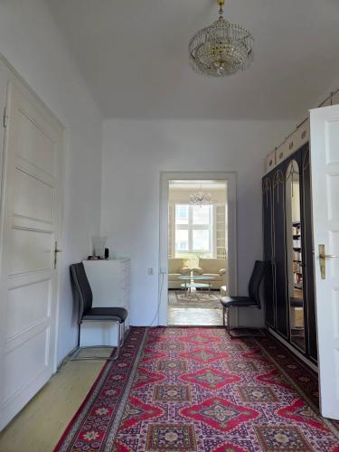 Byt s úžitkovou plochou 147,19 m² a obytnou plochou 121,10 m² spája dobové kvality s moderným bývaním. Vzdušnosť a nadčasový pocit dodávajú vysoké stropy a veľké presklené okná. Byt má unikátnu dispozíciu s tzv. „vnútorným okruhom“ (viď pôdorys) a je priechodný naprieč celým domom, so spálňami orientovanými na východ a obývacími priestormi na západ.