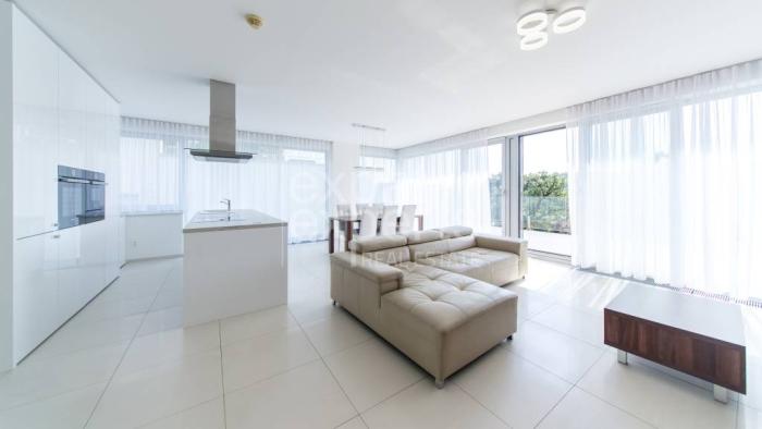 Byt je klimatizovaný, nachádza sa v novostavbe, prenajíma sa čiastočne zariadený, dozariadenie bude možné podľa preferencií budúcich nájomníkov. Byt je vybavený elektrospotrebičmi, podlahové vykurovanie, vstavané skrine, hliníkové okná s externými žalúziami, byt má vlastný bezpečnostný systém.