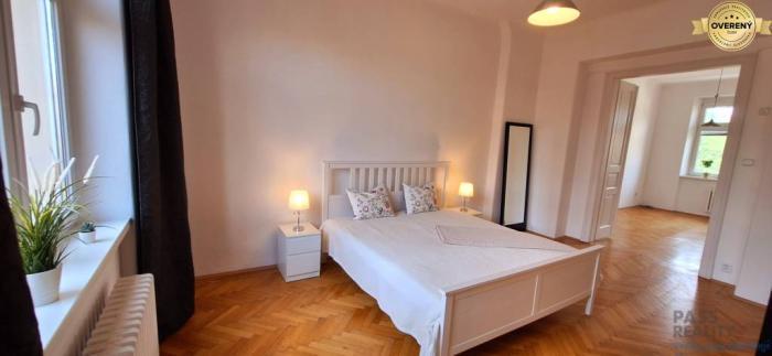 Historický byt v tehlovom dome o celkovej výmere 124 m² pozostáva zo 4 obytných miestností a samostatnej kuchyne. K dispozícii sú dva balkóny na príjemné posedenie. Prekvapí zaujímavým, praktickým a veľkorysým dispozičným riešením s očarujúcou atmosférou. Nachádza sa na 2./3. poschodí bez výťahu (k dispozícii je stoličkový výťah). V prípade záujmu je možné využívať vlastné parkovacie státie vo vnútornom uzatvorenom dvore.