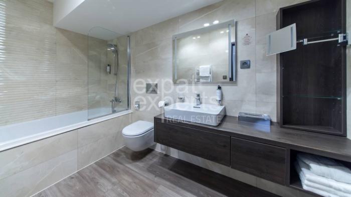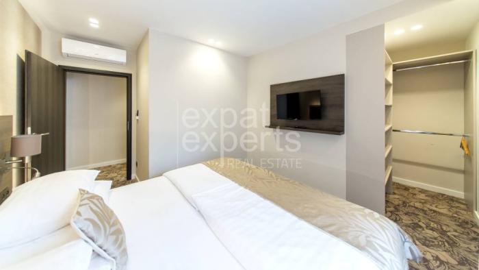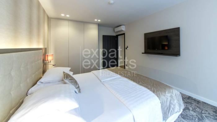 Byt je dizajnovo zariadený, klimatizácia a TV v každej miestnosti. Jedna spálňa má šatník a druhá vstavanú skriňu.