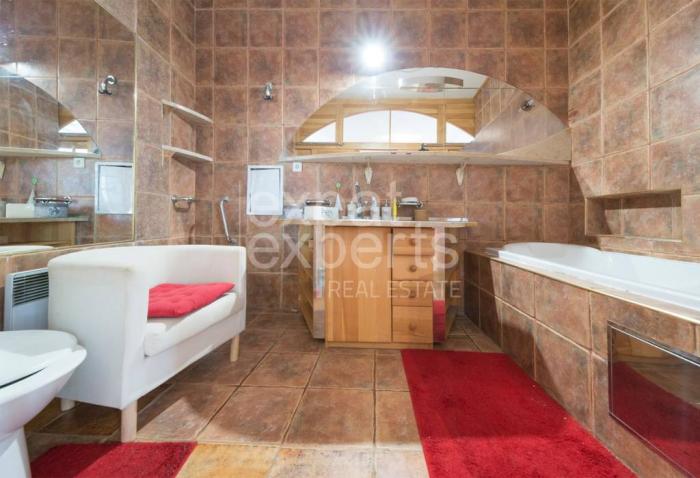 Vstup do bytu je vyvýšený schodmi. Po pravej strane sa nachádza priestranná kuchyňa so sedením. Po ľavej strane od vstupnej chodby sa dostávame do rozsiahlej vydláždenej kúpeľne. Kúpeľňa disponuje veľkou osadenou vaňou, toaletou, 2 zrkadlami, okrúhlym umývadlom a skrinkou. Ďalší prechod vedie do hlavnej miestnosti, ktorá svojim zariadením vytvára dojem tepla. Je vybavená drevenými parketami, skriňou, stolíkom, stoličkami, gaučom a posteľou.