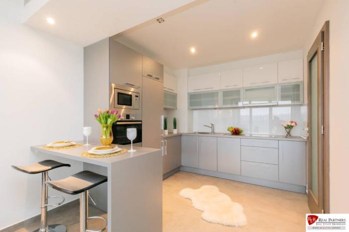 Byt je štýlovo plne zariadený a pripravený ihneď k nasťahovaniu, pozostáva z priestrannej obývačky s otvorenou dispozíciou kuchyne,