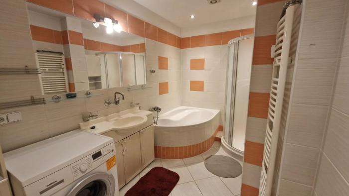 Kúpeľňa: vaňa, sprchovací kút, práčka