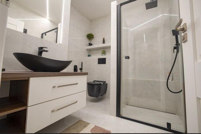 Kompletná rekonštrukcia bytu – rozvody elektriny a vody, podlahy, okná, vstavaný nábytok, kuchynská linka so vstavanými spotrebičmi, zabudované rekuperačné jednotky a hydroizolácia.