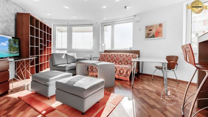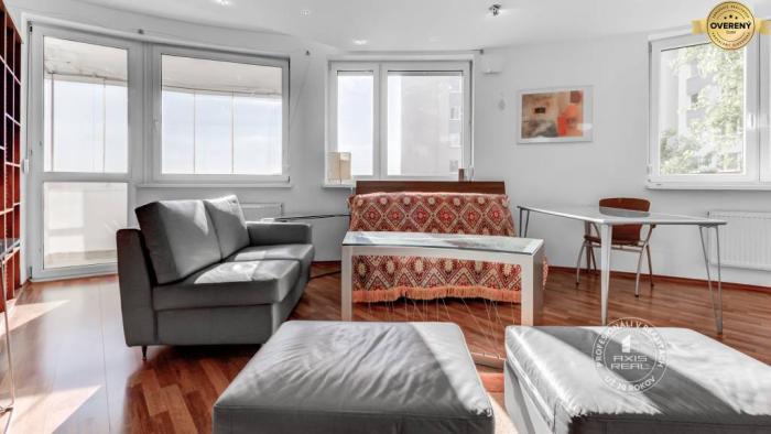 Realitná kancelária AXIS REAL ponúka na prenájom slnečný 1-izbový byt so ZASKLENOU LODŽIOU na ulici Matejkova v lokalite Bratislava IV Karlova Ves - Dlhé Diely. Celková rozloha bytu je 46,52 m2 (úžitková plocha bytu 43,52 m2, lodžia 3 m2) a nachádza na 4. poschodí v 8 poschodovom bytovom dome s VÝŤAHOM.