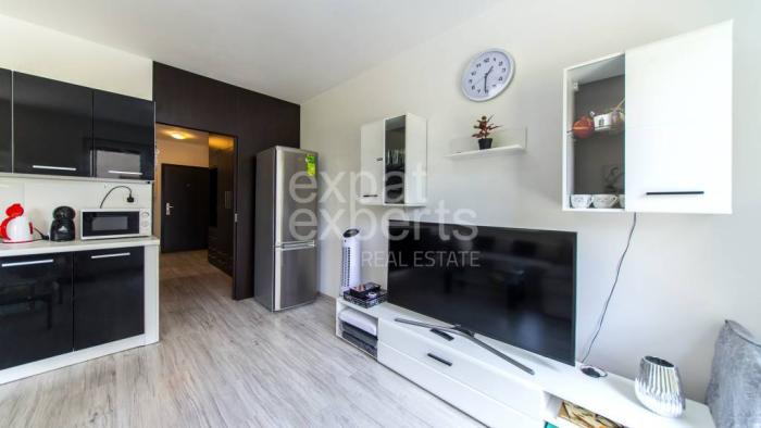 Vstupná hala so vstavanou skriňou, obývacia izba prepojená s plne vybavenou kuchyňou so vstupom na balkón, spálňa s manželskou posteľou a skriňou, kúpeľňa so sprchovacím kútom, toaletou a práčkou.
