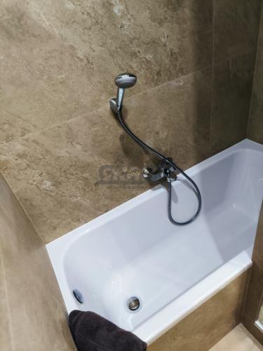 - nová sanita v kúpeľni, kde je vaňa ako aj i sprchový kút, nové obklady a dlažba
