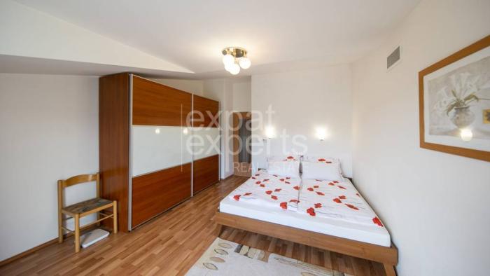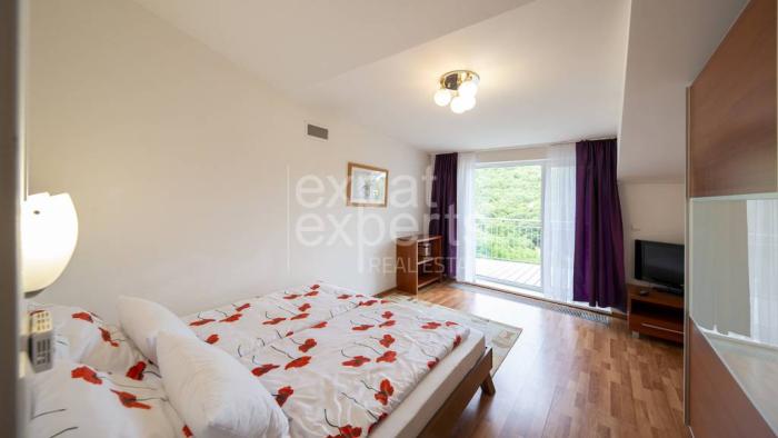 Vstupná hala, obývacia izba s krbom, oddelená plne vybavená kuchyňa s jedálenskou časťou, špajza, spálňa so šatníkovou skriňou, šatník, kúpeľňa s vaňou a sprchovacím kútom, samostatné WC; loggia s krásnym výhľadom na zeleň.