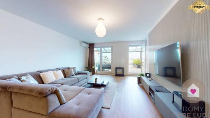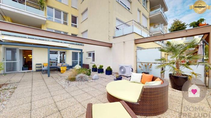 Nájsť v dnešnej dobe moderne zariadený, plne vybavený byt v príjemnom prostredí plnom zelene a nadštandardnou výmerou býva náročné. My Vám však ponúkame na predaj priestranný 2 izbový byt o výmere 129,29 m2, so slnečnou priestrannou terasou, ktorá zväčšuje celkovú plochu o ďalších takmer 77 m2, s vlastným garážovým státím a pivnicou v uzavretom areáli rezidencie Tupého pri bratislavskej Kolibe.