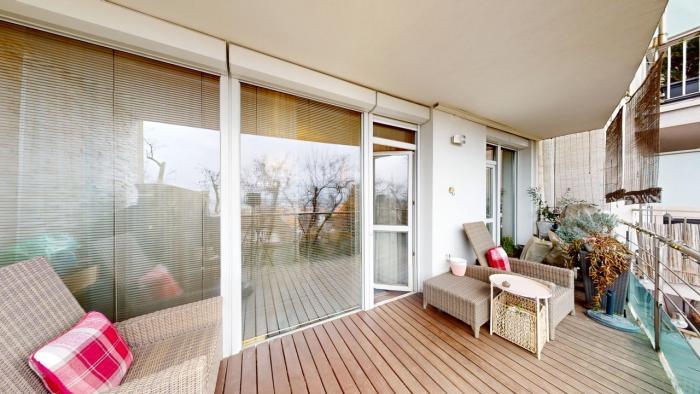 Výmera podlahovej plochy bytu je 65,59 m2 plus TERASA o výmere 12,16m2 so vstupom z obidvoch izieb. K bytu patrí murovaná pivničná kobka o výmere 2,30m2 v suterénnych priestoroch domu dostupných výťahom....a jedno vyhradené exteriérové parkovacie stojisko pred bytovým domom v cene predaja.