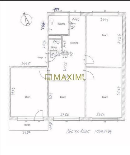 - Rozloha bytu 82,77m2, izba 16.03, izba 11.95, izba 16.29, izba16.29, WC 1.19, kúpeľňa 3.03, kuchyňa 4.27, pivnica 5.76