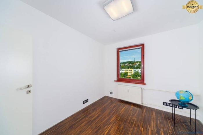 Z pracovne, ktorá môže slúžiť aj ako detská izba, sa naskytá nádherný výhľad na Kamzík, ktorý umocňuje pocit spojenia s prírodou.