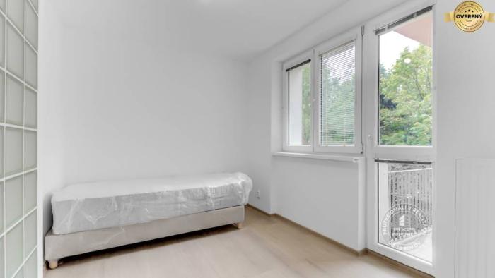 Byt s celkovou výmerou 60,5 m2 (1,56 m2 pivničná kobka a 2 m2 BALKÓN) sa nachádza na 2. poschodí 6-poschodového tehlového domu so zatepleným obvodovým plášťom, oba vstupy do bytového domu sú na elektromagnetický čip. Dispozične byt pozostáva z vstupnej chodby, samostatnej kúpeľne, samostatného WC, technickej miestnosti pre práčku so sušičkou, dvoch samostatných nepriechodných spální pričom z jednej sa vstupuje na balkón a obývacej izby s kuchynskou časťou. Parkovanie je rezidenčné priamo pred bytovým domom.