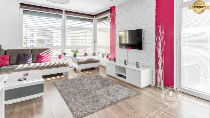 Realitná kancelária AXIS REAL ponúka exkluzívne na prenájom moderný, kompletne ZARIADENÝ 2-izbový byt s balkónom o celkovej výmere 71 m2 (z toho balkón má cca 8,5 m2) v novostavbe v miestnej časti Lamač, na ulici Bakošova. Mesačné nájomné je 650,- EUR plus záloha za energie 180,- EUR (podľa počtu nájomníkov). V cene nájomného je aj INTERNET a KTV. Parkovanie v podzemnej garáži je za 60,- EUR mesačne.