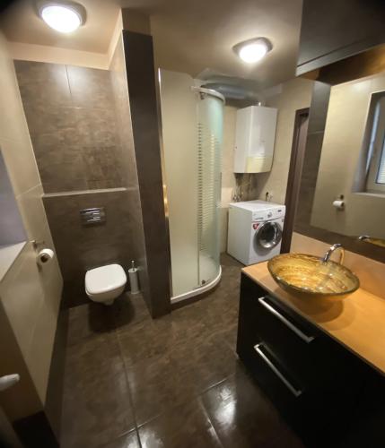 Kúpeľňa: WC, sprchový kút, práčka, 2 umývadlá