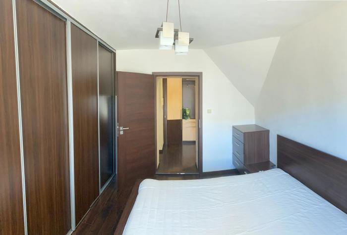 Spálňa: Manželská posteľ, 2 komody, 2 nočné stolíky a priestranný roldor pozdĺž celej steny