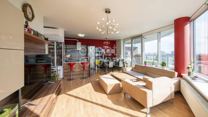 Exkluzívne Vám ponúkame slnečný 3 izbový byt 79,72 m2, situovaný na 13.poschodí/24 vo veži č.1 projektu III veže na Bajkalskej ulici. K bytu prináleží loggia 8,18 m2 a 2x garážové státie za príplatok.