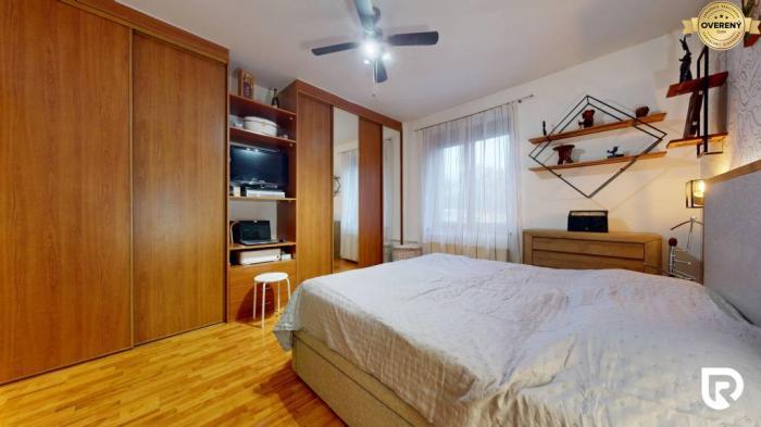 Byt pôsobí mimoriadne útulne, prakticky a príjemne domácky. Obytný priestor tvorí veľká obývacia izba prepojená s kuchyňou a jedálenským kútom, čo vytvára otvorené a svetlé centrum celého bytu. Moderné sadrokartónové stropy s bodovým osvetlením dodávajú miestnostiam štýlový vzhľad a drevené aj laminátové podlahy podčiarkujú pocit tepla domova. Spálňa ponúka dostatok priestoru, pôsobí elegantne a je orientovaná do tichšej časti. Detská izba je priestranná, s možnosťou rôzneho usporiadania. Kúpeľňa s oknom má rohovú vaňu a pôsobí svetlo a čisto. Celkový charakter bytu je ideálny pre rodinu, pár aj jednotlivca, ktorý hľadá hotové bývanie bez ďalších investícií.