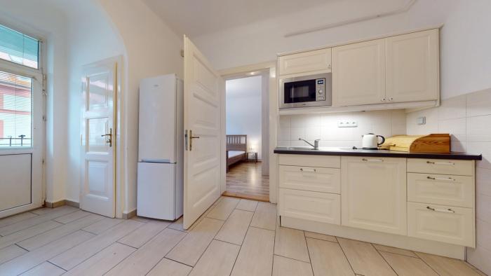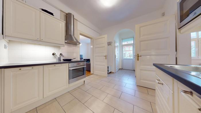 Byt bol zrekonštruovaný a pozostáva z dvoch samostatných, nepriechodných izieb, samostatnej kuchyne s kuch. linkou so vstavanými spotrebičmi, vrátane umývačky riadu, kúpeľne s vaňou a oddelenej toalety.