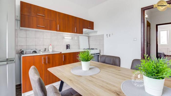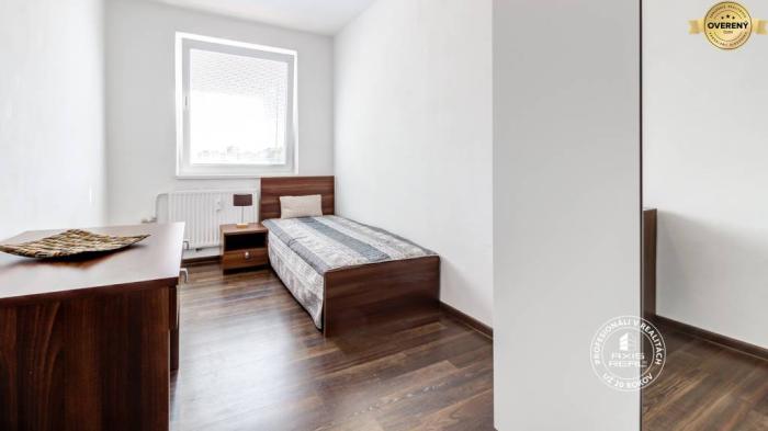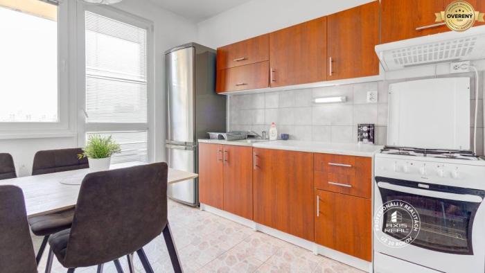 Realitná kancelária AXIS REAL exkluzívne ponúka na prenájom zariadený 4-izbový byt v časti BA V., Petržalka na ulici Röntgenova, neďaleko DIGITAL PARKU. Dostupný ihneď. Mesačné nájomné je 990,- EUR plus energie od 250,- EUR (podľa počtu osôb). Tento priestranný zrekonštruovaný byt o celkovej výmere 86 m2 (z toho lodžia má cca 5 m2) sa nachádza na 4. poschodí v bytovom dome s VÝŤAHOM celkovo z 8 poschodí. Dispozične byt pozostáva z priestrannej vstupnej haly, samostatnej kuchyne, obývačky a 3 samostatných spální. Všetky izby sú NEPRIECHODNÉ. Moderná kúpeľňa má sprchovací kút, WC je samostatné. Lodžia so vstupom z kuchyne je tiež zrekonštruovaná. Vybavenie spotrebičmi: práčka, plynový sporák s rúrou, chladnička z mrazničkou. K dispozícii je aj pivnica.
