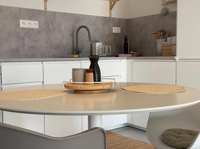 Liate epoxidové podlahy – moderný priestranný dojem, ľahká na údržbu, Monochromatický interiér v betónových odtieňoch s dôrazom na hygge atmosféru