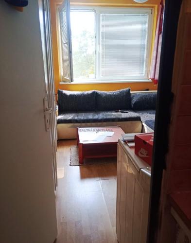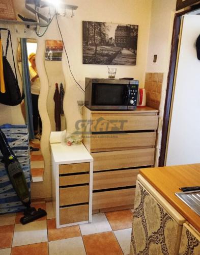 vstupná chodba s kuchynskou linkou, WC s kúpeľňou, izba. Byt nemá balkón.