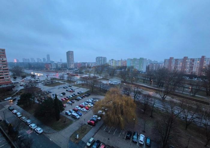 3 samostatné - nepriechodné izby - 22m² (loggia, klíma), 16m²(vstavaná skriňa, vonkajšie žalúzie) a 8m², plne vybavenú kuchyňu (indukcia, rúra, chladnička, umývačka riadu, mikrovlnná rúra, hrnce, riad, príbory). Byt je zabezpečený bezpečnostnými dverami.