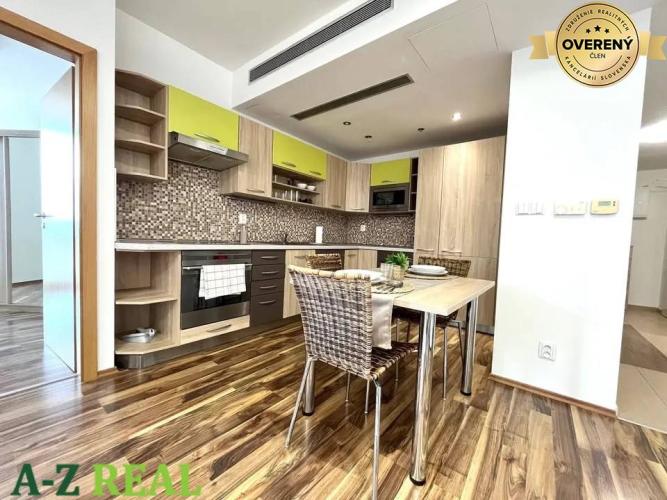 Vybavenie kuchyne: linka so zabudovanými spotrebičmi - umývačka riadu, elektrická rúra, sklo-keramická varná doska, digestor, chladnička s mrazničkou, mikrovlnná rúra.