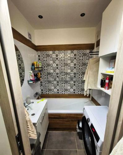 Kuchynská linka so zabudovanými spotrebičmi (teplovzdušná rúra, indukčná varná doska, digestor, chladnička s mrazničkou, umývačka riadu). Zariadená kúpeľňa s vaňou a Smart práčkou. Podlaha: plávajúca podlaha (obývačka, spálňa), dlažba (predsieň, kuchyňa, kúpeľňa, WC,)