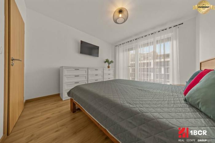 Stačí si priniesť osobné veci a začať si užívať komfort novostavby od prvého dňa. Samotný byt má praktickú dispozíciu, ktorá je naplno využitá s ohľadom pre maximálny komfort a úložný priestor. Vďaka svojej výmere patrí k väčším 2-izbovým bytom v rámci tohto projektu.