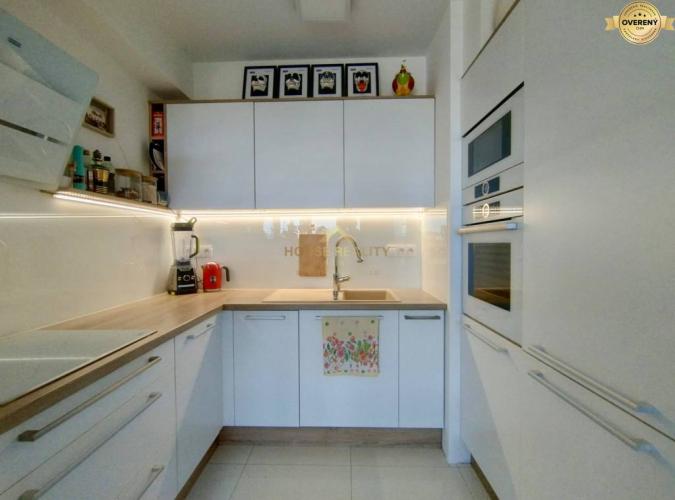 • kuchynskú linku na mieru so zabudovanými kvalitnými spotrebičmi: elektrická varná doska, digestor, umývačka riadu, chladnička, mikrovlnná rúra, elektrická rúra