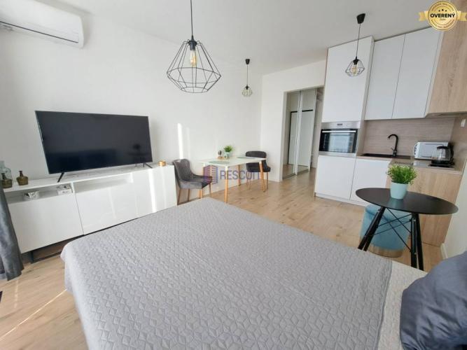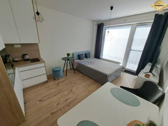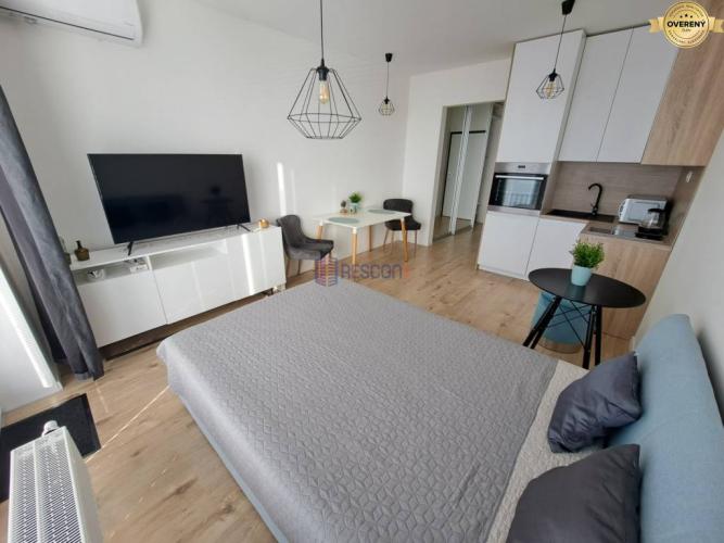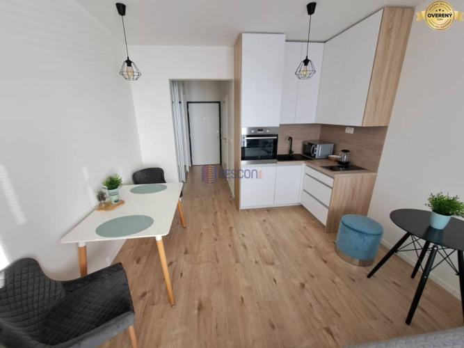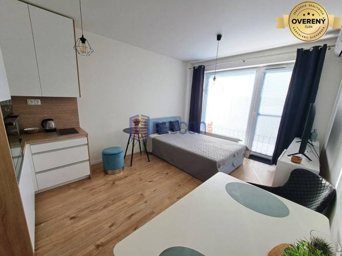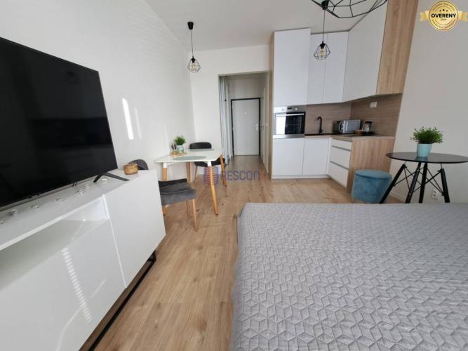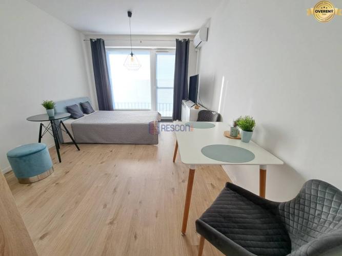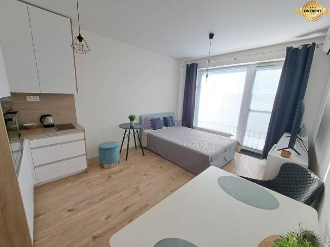 - Klimatizovaný a kompletne zariadený: vstavaná skriňa, vešiaková stena, sprchový kút, práčka, toaleta, umývadlo so zrkadlom, kuchyňa s indukčnou doskou, chladničkou, mikrovlnkou, rúrou, varnou kanvicou a základným vybavením
