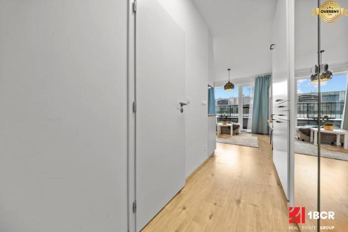 Byt sa nachádza na 5. poschodí, pričom jeho orientácia do tichého vnútrobloku zaručuje maximálne súkromie a pokoj od mestského ruchu. Interiér prešiel inteligentným plánovaním, vďaka čomu ponúka maximálnu efektivitu a dostatok úložného priestoru – od priestranného vstavaného šatníka na chodbe až po funkčnú TV stenu s odkladacím systémom.