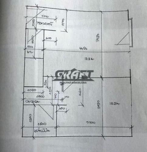 Pri vstupe do bytu na nachádza predsieň, z ktorej sa da vojsť do samostatnej toalety a obývačky spojenej s kuchyňou. Spalná je oddelená murovanou stenou od obývačky a zo spalne sa vchádza do ďalšej predsiene s odkladacím priestorom a následne do kúpeľne.