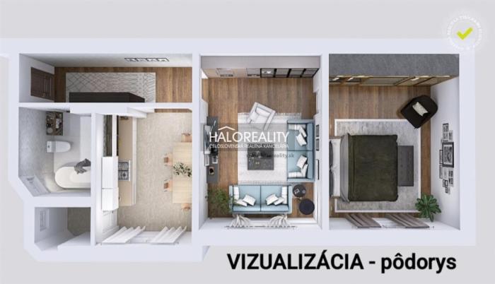 DISPOZÍCIA BYTU: Byt pozostáva z 2 obytných miestností a príslušenstva, ktorým je kuchyňa, komora, kúpeľňa spojená s WC a vstupná hala.