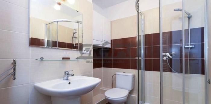 Vstupná chodba, kúpeľňa s WC, priestranná izba s výstupom na balkón