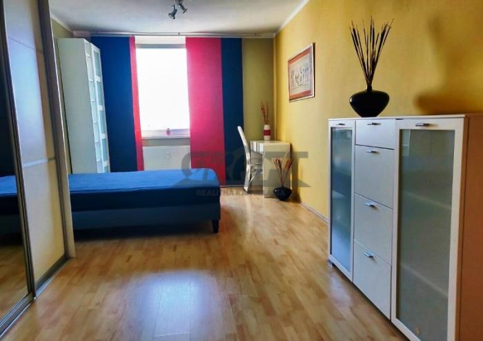 spálňa: manželská posteľ, kozmetický stolík, vstavaná skriňa, samostatne stojaca skriňa, komoda, japonské závesy, pripojenie na internet a TV.
