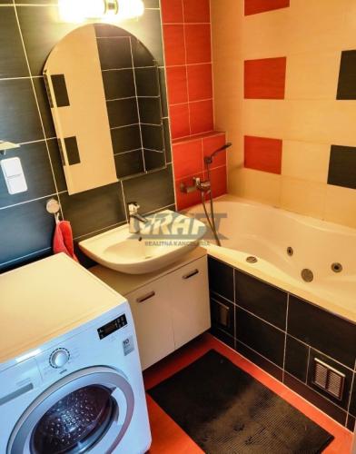 kúpeľňa: masážna vaňa so sprchou, umývadlo, zrkadlo, práčka so sušičkou