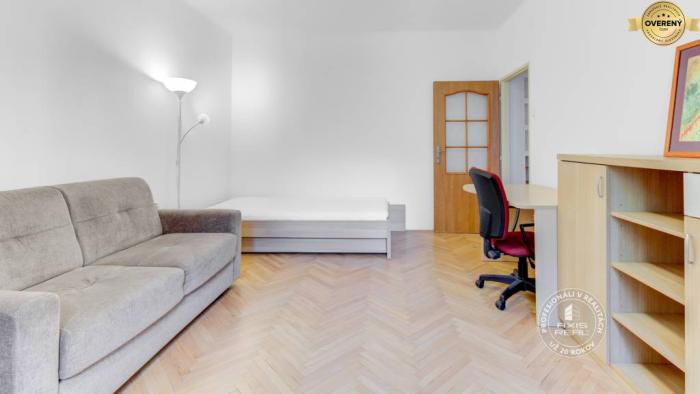 Byt prešiel čiastočnou rekonštrukciou elektroinštalácie, na podlahách sa nachádzajú vybrúsené pôvodné parkety alebo dlažba, okná sú plastové so žalúziami, vstupné dvere sú bezpečnostné, interiérové dvere boli taktiež vymenené. Byt ponúkame na predaj aj so zariadením tak ako je vidno na fotografiách mimo šedej pohovky. Kuchyňa je zariadená kuchynskou linkou so zabudovanou sklokeramickou varnou doskou, elektrickou rúrou, chladničkou s mrazničkou, digestorom a mikrovlnou rúrou. Samozrejmosťou je stolovanie pre dve osoby. V kúpeľni nájdete sprchovací kút, WC, umývadlo a práčku. Na LODŽIU situovanú do vnútrobloku plného zelene sa vstupuje zo samostatnej nepriechodnej kuchyne. Vďaka skvelej dispozícií, dvom samostatným nepriechodným izbám, skvelej polohe s kompletnou občianskou vybavenosťou a zariadeniu bytu je byt ideálna investícia s možnosťou okamžitého prenajímania ale taktiež aj po menších úpravách aj na zmenu dispozície na 2,5 izbový byt. Prevádzkové náklady pri užívaní bytu 2 osobami činia 160,- euro správcovské poplatky + 30,- euro poplatok za elektrinu.